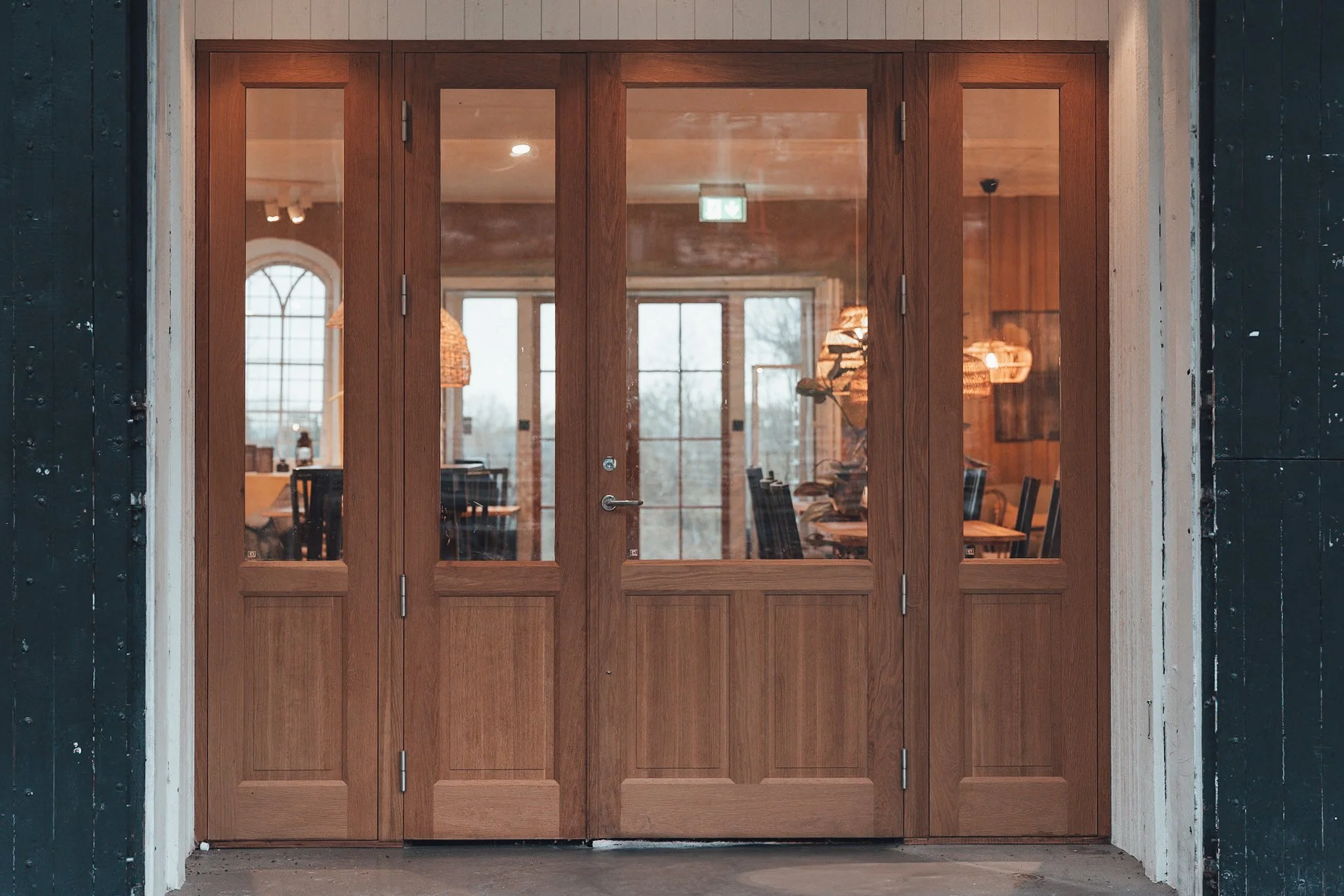 Dubbel glasdörr i gotländsk furu.